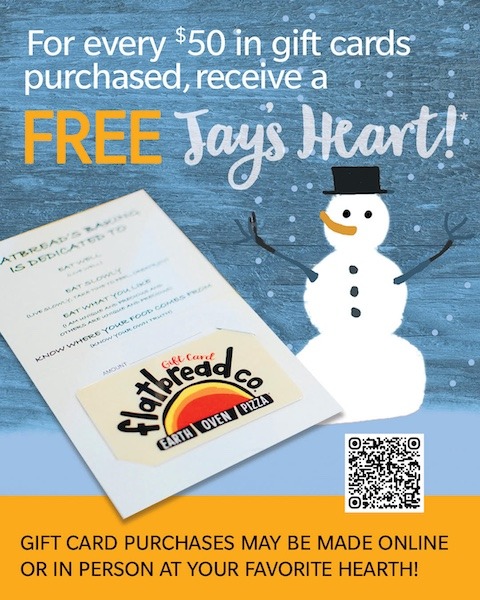 Founded in 1998, by Jay Gould, the first Flatbread Company opened in Amesbury, MA. Today the company has eight other locations including Portland, ME; Portsmouth and North Conway, NH; Somerville and Bedford, MA; Providence, RI; Maui, HI as well as Whistler, B.C. Flatbread Company’s founding principles rely on quality and integrity of ingredients that allows them to serve clean food without unwanted chemicals while supporting organic and local farming. Additionally, the company is “mission based” with the desire to get involved in community through local non-profit and neighborhood partnerships. “Benefit Bakes” are featured at each location every Tuesday night to provide assistance to those organizations. For more information visit Flatbreadcompany.com or become a fan on Facebook at https://www.facebook.com/FlatbreadPortsmouth.